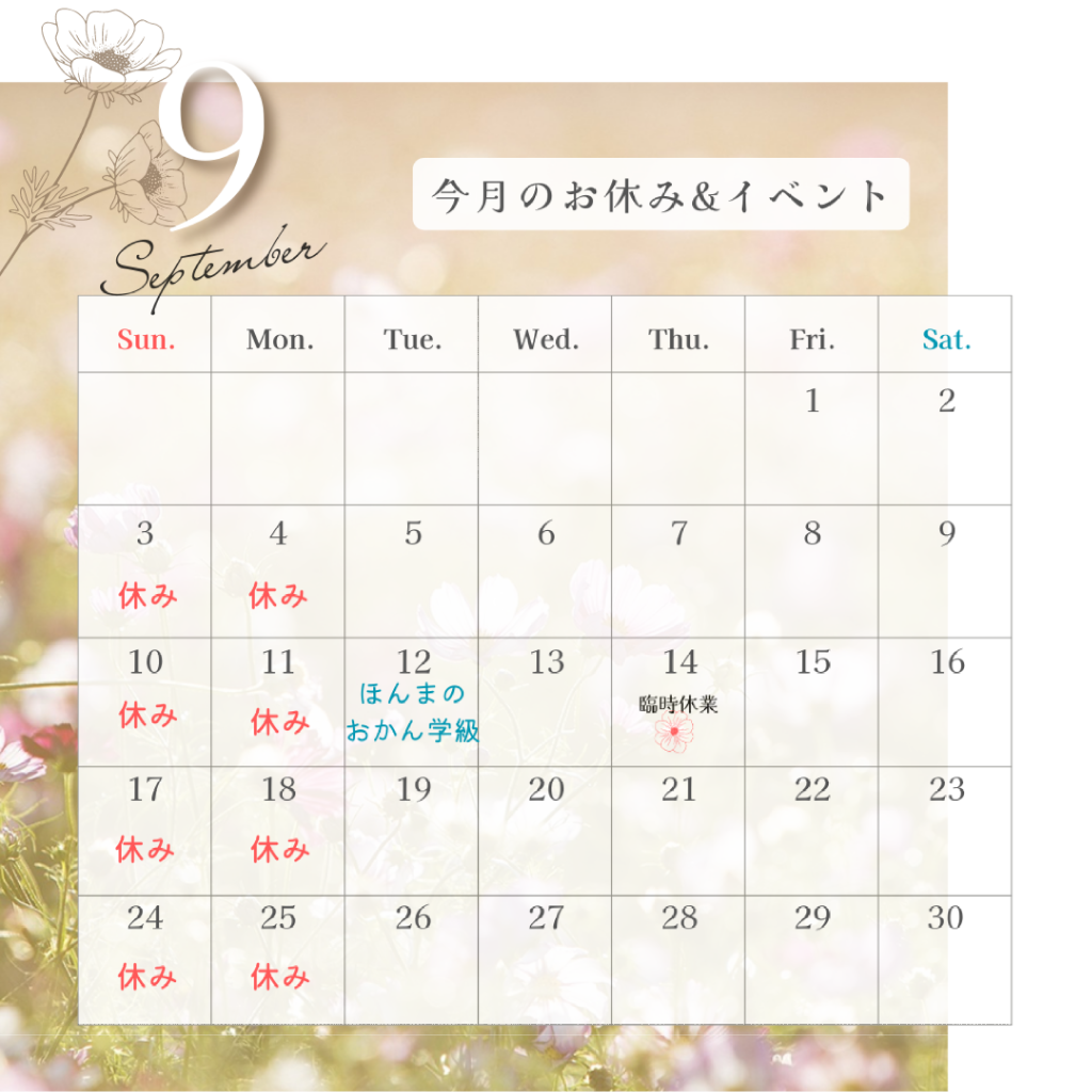 もう8月もあと1日ですね💦来月の予定をお伝えします。